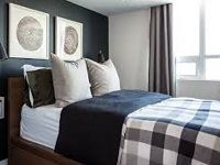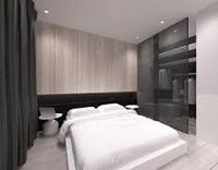 Walaupun Ruangan yang Minimalis ini tapi terlihat nampak mewah seperti layaknya kamar hotel, Hal ini di dukung oleh bagian dinding semua tercover dengan kabinet lemari yang memiliki banyak fungsi dan tambahan aksesoris lampu. Sumber Farukix