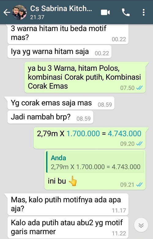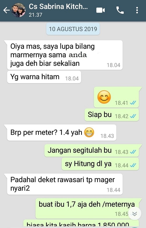 Awal ibu Sabrina Menghubungi kami ingin meminta kisaran harga, Marketing kami pun merespon dengan baik dan Klien pun Meminta Protofolio untuk Mengetahui Info Detail tentang kami.