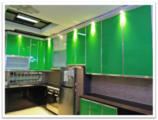 6. Memiliki lapisan permukaan yang dilapisi dengan polyester sehingga kitchen set lebih awet, serta tahan terhadap iklim, garam, asam, dan korosi.