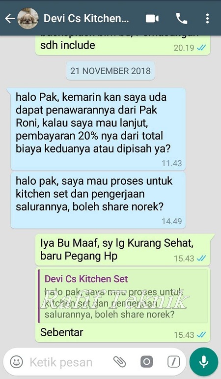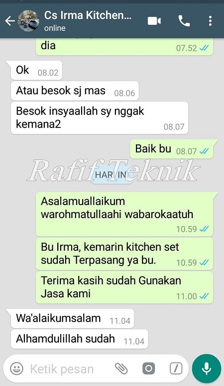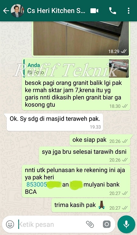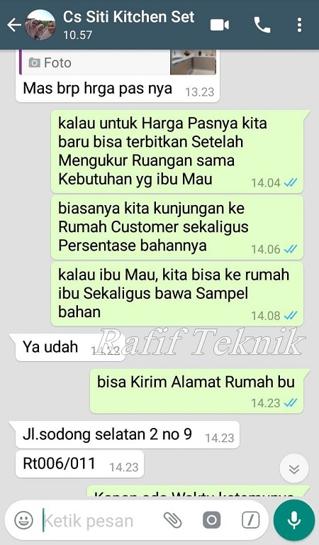 Pertanyaan ini keluar Saat Ibu Irma Ingin Order di Rafif Teknik dan mau Memastikan Kembali, Sebelum Kitchen set yang lama di Bongkar.